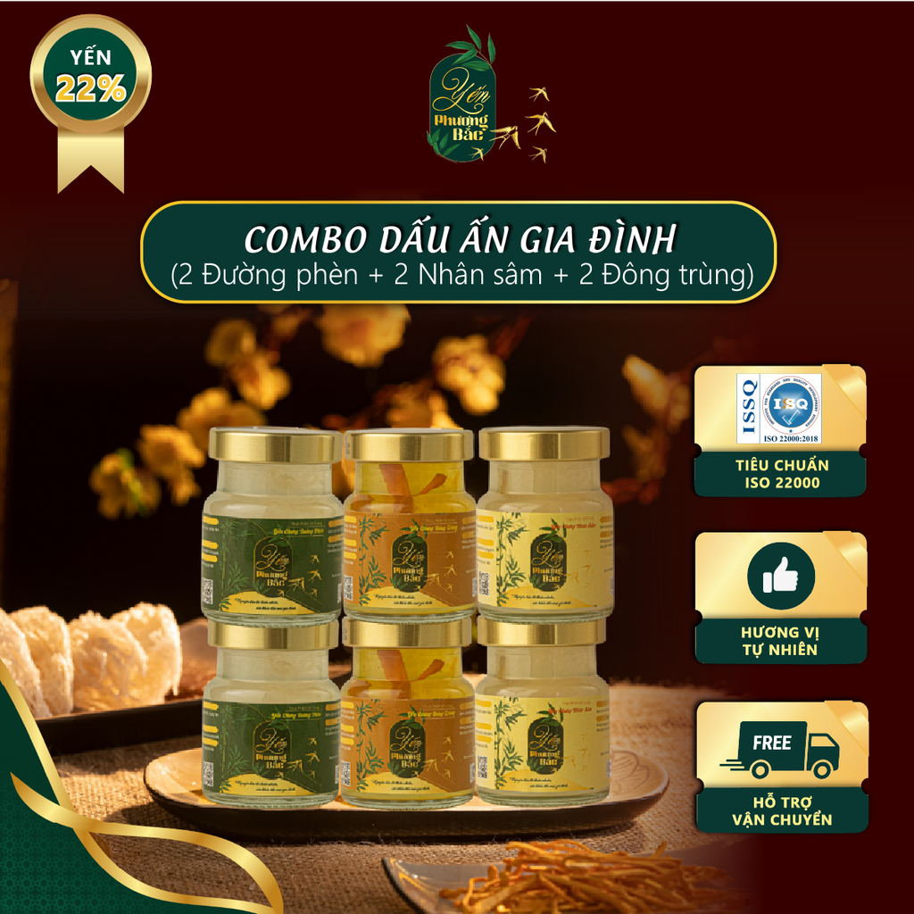 Combo Dấu Ấn Gia Đình 6 hũ Yến Chưng: 2 Nhân Sâm, 2 Đường Phèn, 2 Đông Trùng Hạ Thảo Tăng Cường Sức Khoẻ